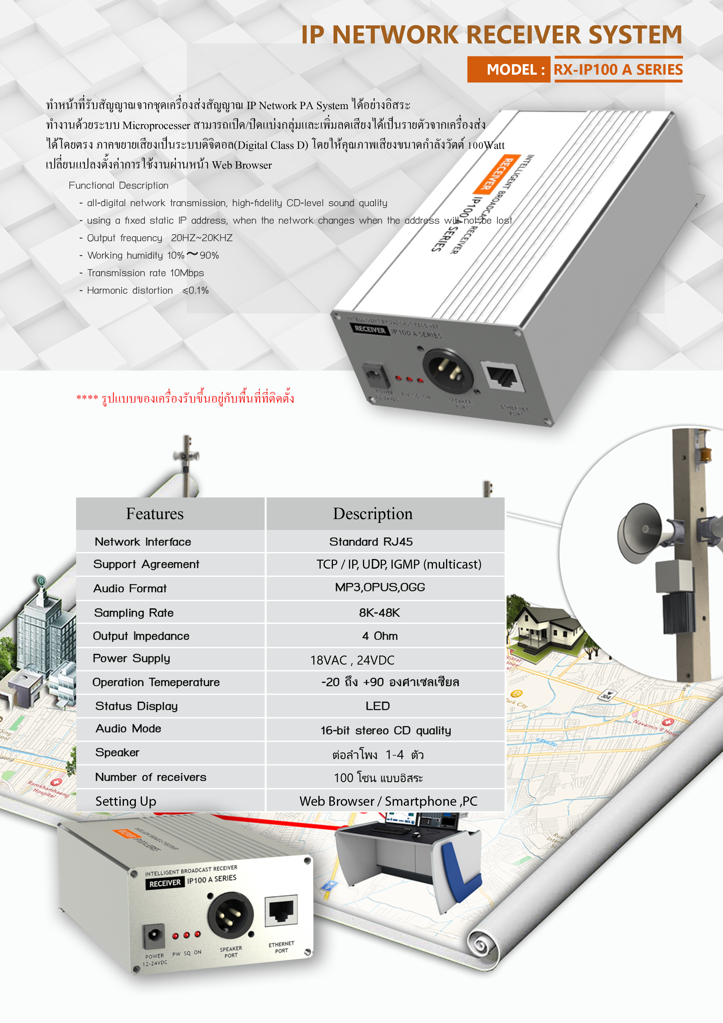 เครื่องรับ ถอดระหัสเสียง IP Audio Decoder decodes and plays multi-protocol and multiformat audio streams, including MP3, OGG, OPUS, PCM, And MP3