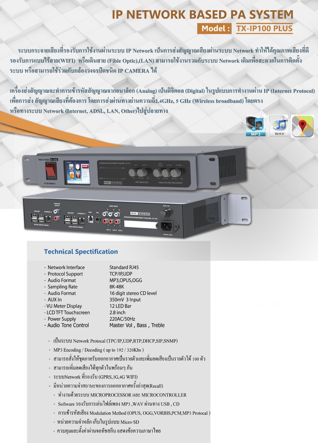 | รายละเอียดเเละข้อมูลของเครื่องรุ่น | TX-IP100 PLUS | |